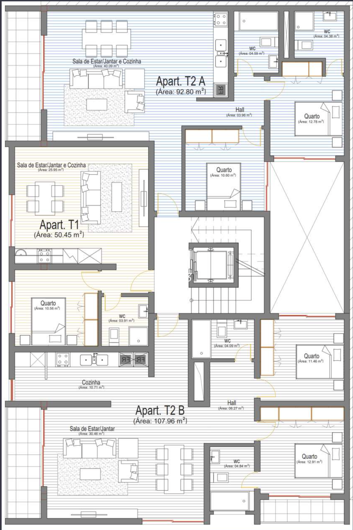 • Optimized Living Spaces: With only 15 exclusive lots available, the building maintains a sense of privacy. Units range from efficient T1 apartments (50 m²) to spacious T2 layouts (up to 108 m²), all featuring generous balconies that maximize natural light.